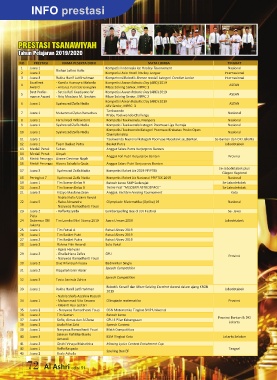 INFO prestasi PREST PRESTASI TSANAWIYAHASI TSANAWIYAHASI TSANAWIYAH PREST T Tahun Pelajaran 2019/2020 Tahun Pelajaran 2019/2020ahun Pelajaran 2019/2020 72 Al Ashri edisi 51